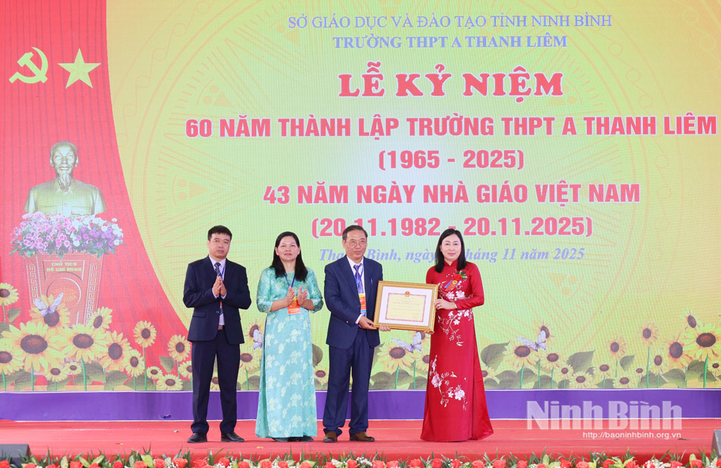 Nhân dịp này, đồng chí Phó Bí thư Thường trực Tỉnh ủy Đinh Thị Lụa trao tặng Bằng khen của Chủ tịch UBND tỉnh cho Trường THPT A Thanh Liêm và các tập thể, cá nhân có thành tích xuất sắc của Trường THPT A Thanh Liêm.